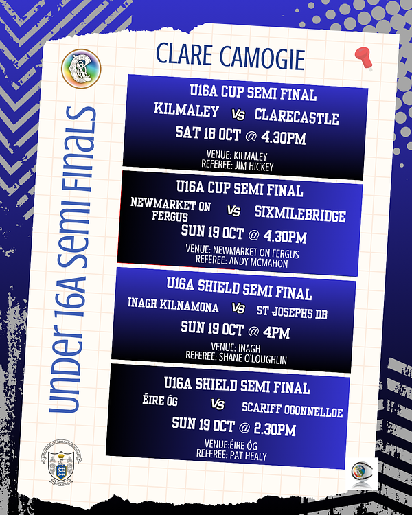 Sat 11th OctClare Credit Unions Senior ChampionshipMcMahon Cup Semi finalsKillanena GAA: Inagh...